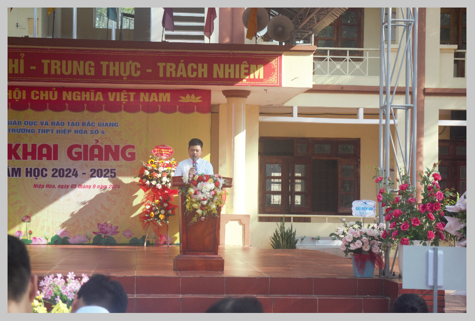 Buổi Lễ khai giảng năm học 2024- 2025 của Trường THPT Hiệp Hòa số 4 diễn ra ngắn gọn, vui tươi, trang trọng, đầy ý nghĩa, đã tạo nên khí thế hào hứng, phấn khởi, tâm thế sẵn sàng cho tất cả các thầy cô giáo và các em học sinh cùng bước vào một năm học mới, hứa hẹn những thành công mới.