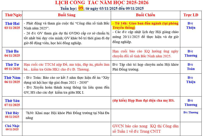 Lịch công tác tuần 9