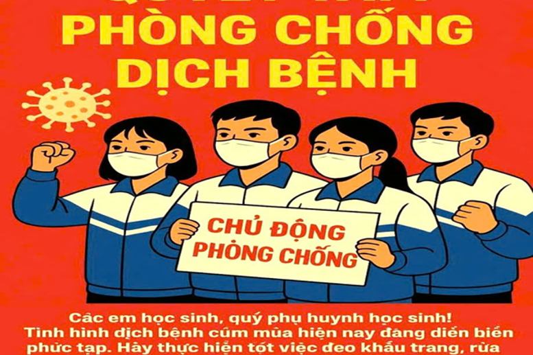 Học sinh: Tích cực thực hiện các biện pháp phòng bệnh, theo dõi sức khỏe. Khi có dấu hiệu sốt, ho, khó thở, hoặc nghi ngờ mắc bệnh truyền nhiễm, cần báo ngay cho giáo viên chủ nhiệm, phụ huynh và nghỉ học để cách ly, đi khám kịp thời.